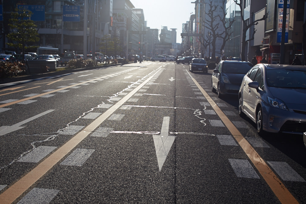 大きな道路と歩道と、スケール感が欧米みたいでいいなぁ。